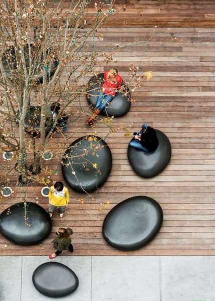 در سطح شهر و مخصوصا در فضاهای پر رفت و آمد مثل محوطه بیرونی مراکز خرید، پاساژ ها و یا پارک ها نیاز به وجود صندلی های برای نشستن و استراحت کردن به شدت احساس می شود، این صندلی ها می توانند ظاهری شبیه سنگ داشته باشند، و نزدیک درختان مکان نمایی شوند و ظاهری جذاب و در عین حال کاربردی به محیط اطراف خود ببخشند