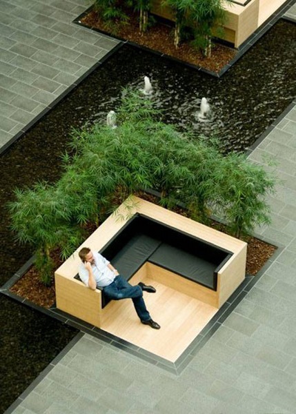 این نوع مبلمان ها در واقع نمونه دیگری از تلفیق با عناصر طبیعی را نشان می دهند، با این تفاوت که این بار با گیاهان ترکیب شده اند و به نوعی عملکردی شبیه ریه های تنفسی برای فضای شهری دارند. این مبلمان ها می توانند باغچه های کوچکی باشند که قسمتی از آن ها برای نشستن پوشیده شده است، درست مثل چیزی که در عکس بالا دیده می شود.