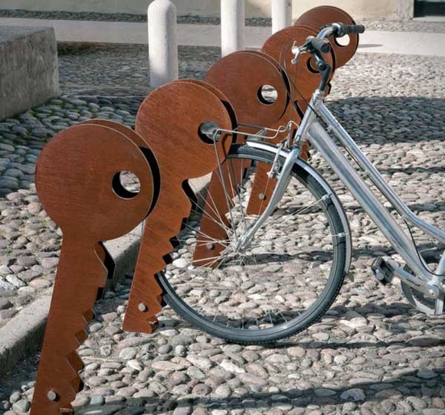 محل پارک دوچرخه ها هم جزو یکی از جذاب ترین موضوعاتی است که می توان به آن پرداخت و برای آن ایده ای مختلف و جذاب و گیرا داد. به طور مثال در عکس بالا شما شما کلید هایی را می بینید که به صورت ایستاده و کمی مایل طراحی شده اند تا شما بتوانید چرخ دوچرخه های تان را به آن قفل و زنجیر کنید و با خیال راحت به دنبال کار خود بروید.