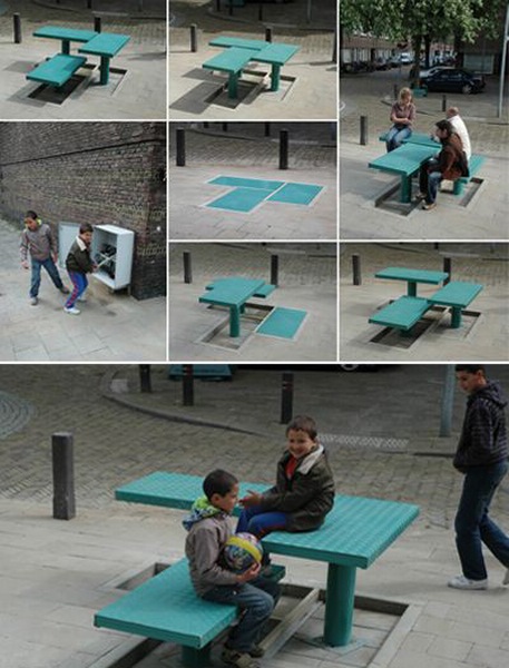 مبلما های تاشو هم برای فضاهای شهری بسیار مناسب هستند، چرا که در مواقعی که به آن ها احتیاجی نیست به راحتی در دل زمین فرو می روند و مزاحمتی برای عبور و مرور ایجاد نمی کنند، رنگ این صندلی ها را می توان متفاوت از کفپوش های دیگر در نظر بگیرید تا بهتر دیده شوند، ولی حتما باید به این نکته توجه کرد که موقع رفت و آمد نباید روی آن پا گذاشت تا برای نشستن تمیز باشند.